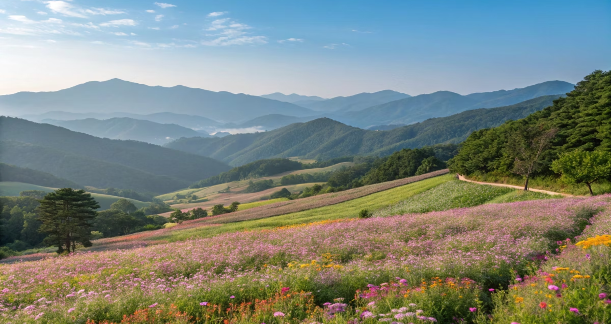 고요한 자연 속에서 바람 따라 펼쳐지는 꽃길을 걷고 싶다면