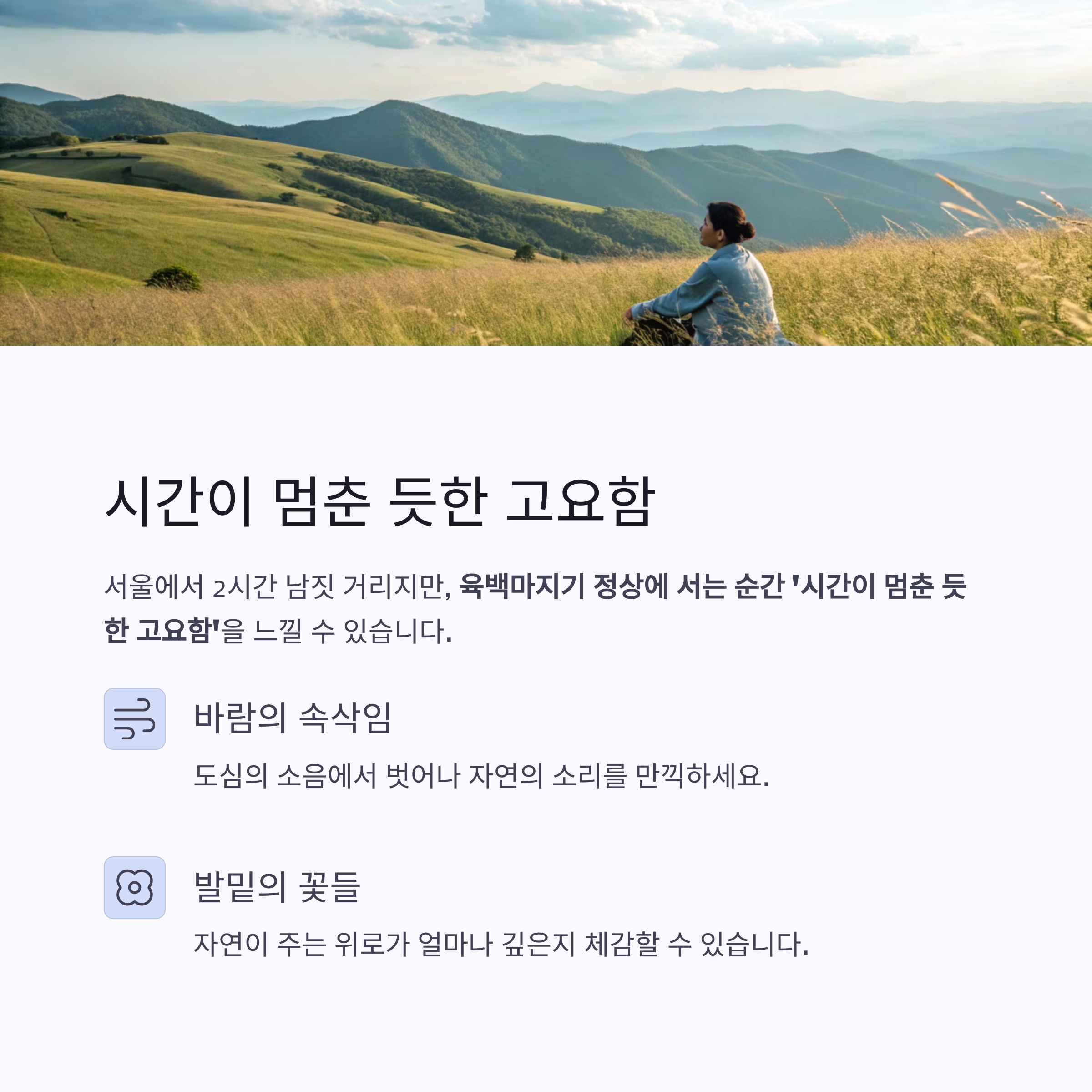 자연이 주는 위로가 얼마나 깊은지 체감할 수 있습니다.